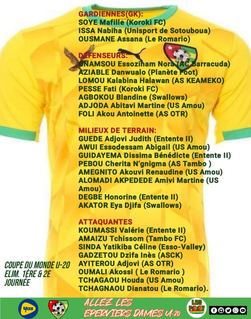 Les Éperviers dames U20 affronteront en double l’équipe tunisienne U20 le 9 – 26 mai pour le compte du premier tour des éliminatoires de la Coupe du Monde U-20.